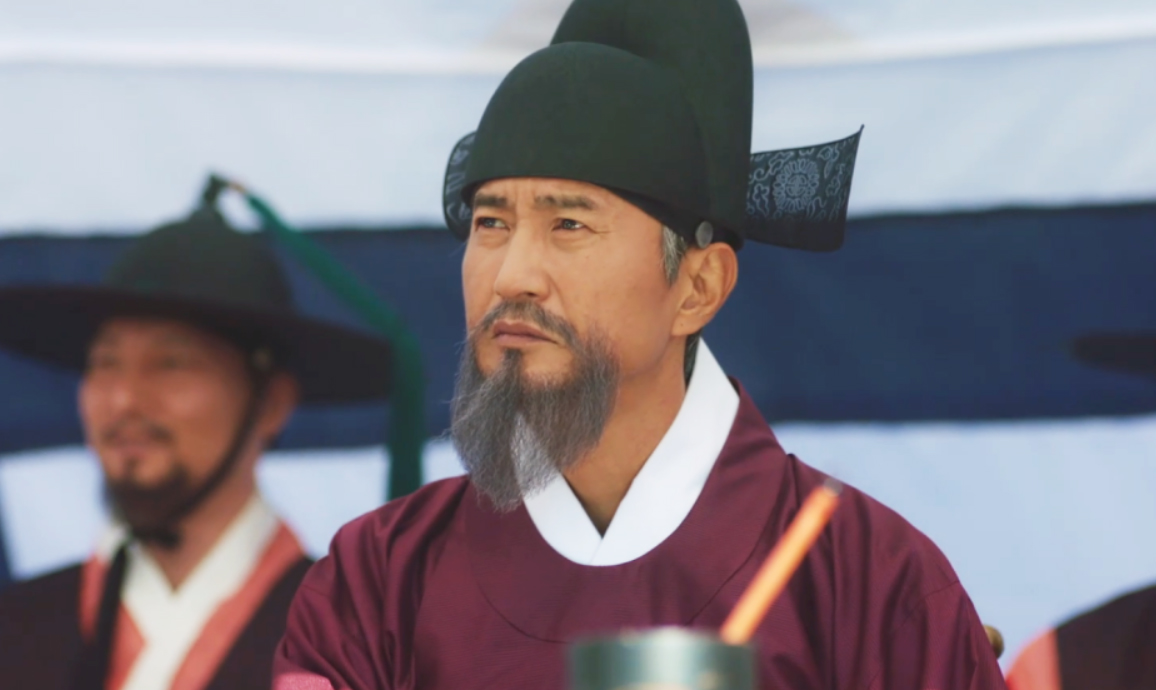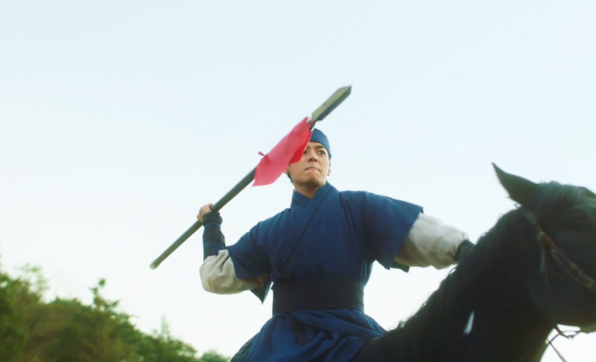 산의 무과초시 날. 산은 단오가 만든 간식을 받고 기분이 좋다 초시가 시작이 되고 위기의 순간은 있지만 무사히 잘 넘기는 산.