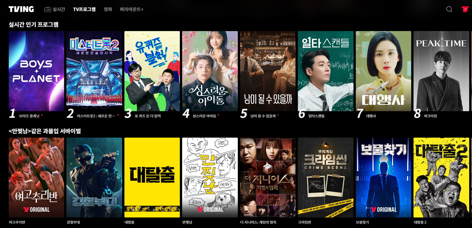 ※티빙 홈페이지에 접속한 후에 로그인을 해주세요