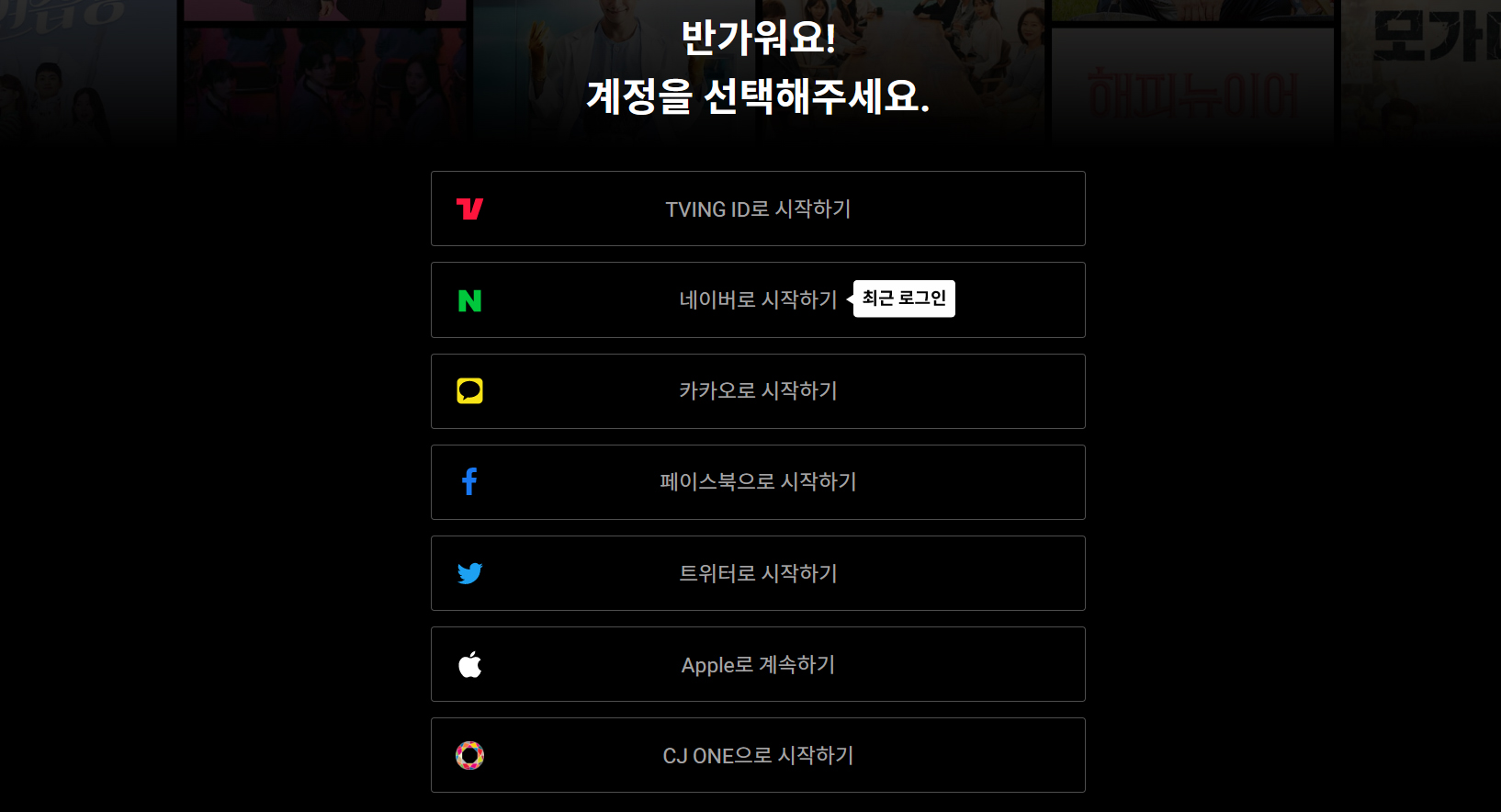 아이디가 없으신 분들은 SNS 아이디를 이용하여 회원가입을 하실 수 있습니다 티빙에서 원하는 콘텐츠를 선택한 후 감상하시면 됩니다
